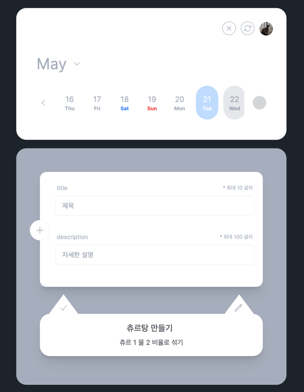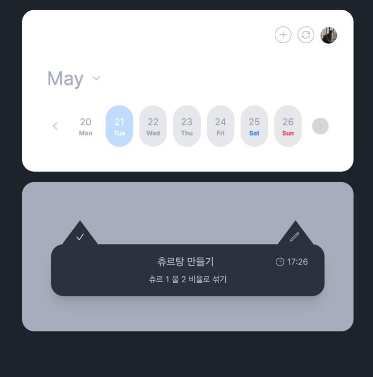 간편한 인터페이스로 고양이의 루틴을 등록하고 체크할 수 있습니다.
